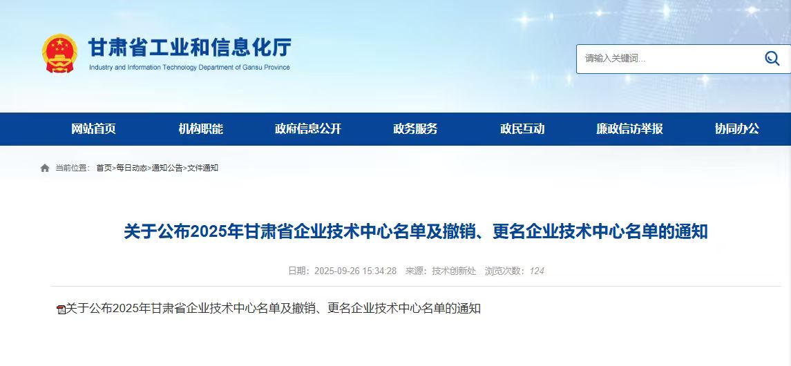 近日,甘肅省工業(yè)和信息化廳發(fā)布《關(guān)于公布2025年甘肅省企業(yè)技術(shù)中心名單及撤銷、更名企業(yè)技術(shù)中心名單的通知》。我公司被甘肅省工業(yè)和信息化廳、甘肅省發(fā)展和改革委員會、甘肅省科學技術(shù)廳、甘肅省財政廳、國家稅務(wù)總局甘肅省稅務(wù)局聯(lián)合認定為2025年甘肅省企業(yè)技術(shù)中心。這一認定標志著我公司在技術(shù)創(chuàng)新體系建設(shè)、核心技術(shù)研發(fā)及成果轉(zhuǎn)化能力等方面獲得省級權(quán)威認可,躋身全省同行業(yè)技術(shù)創(chuàng)新先進行列。